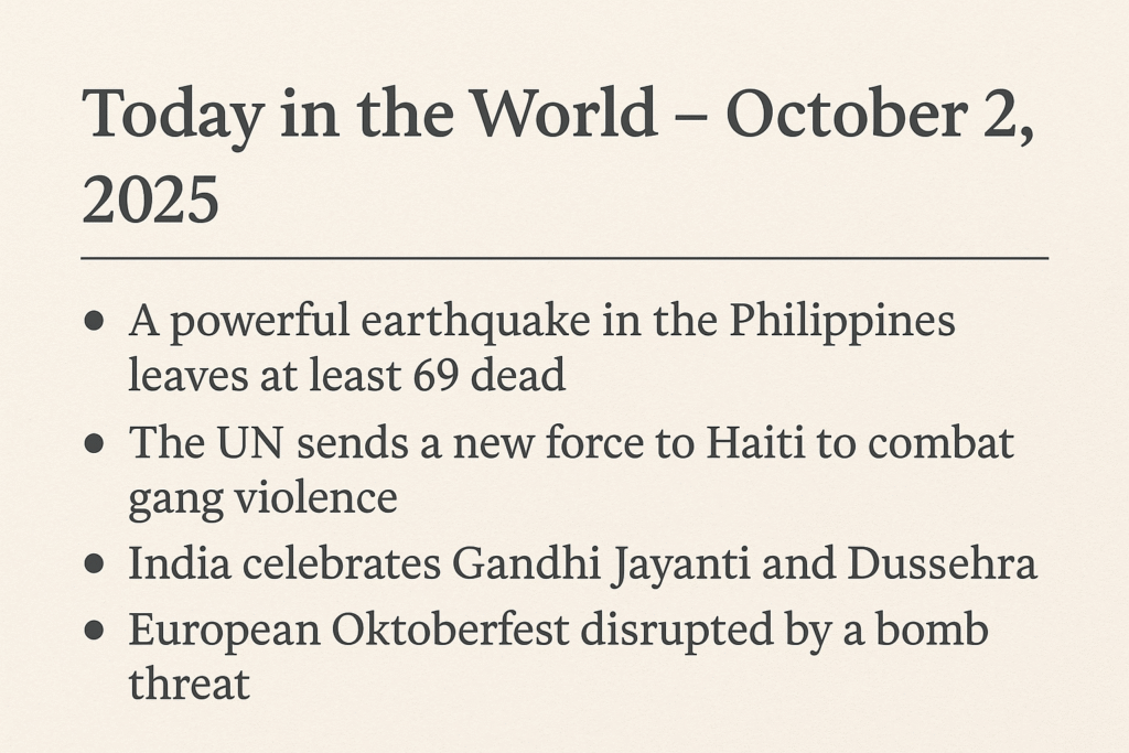Today in the World – October 2, 2025 Today has been a mix of grief, remembrance, and resilience across the