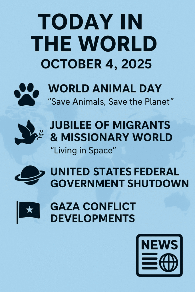 Today in the World – October 4, 2025 World Animal Day Today we celebrate World Animal Day, a special occasion