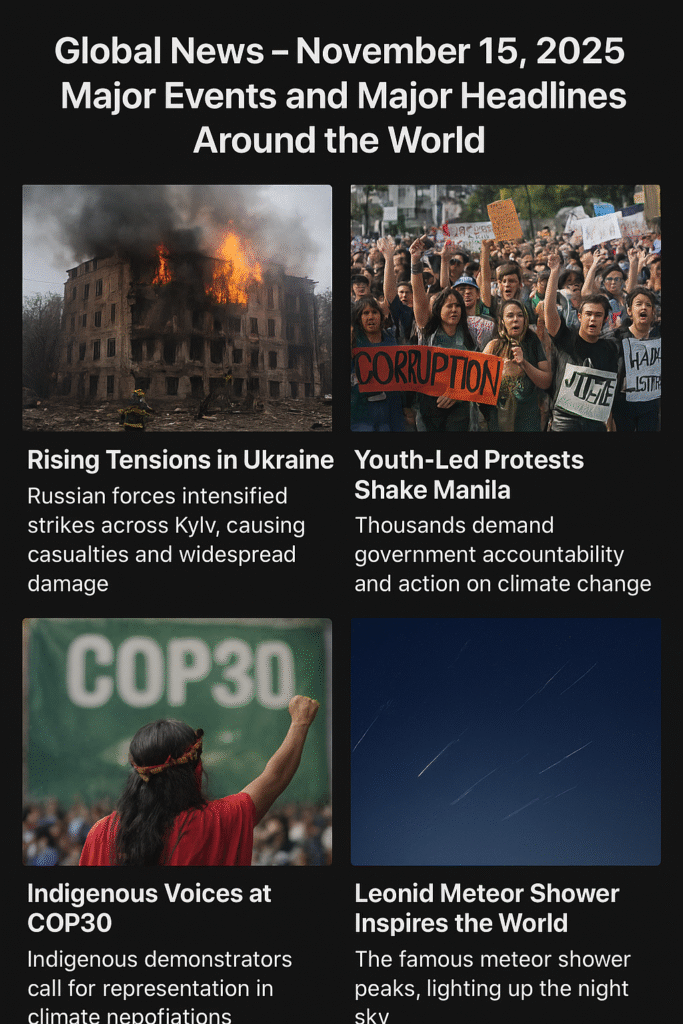 Global News – November 15, 2025 | Major Events and Major Headlines Around the World As the world moves deeper