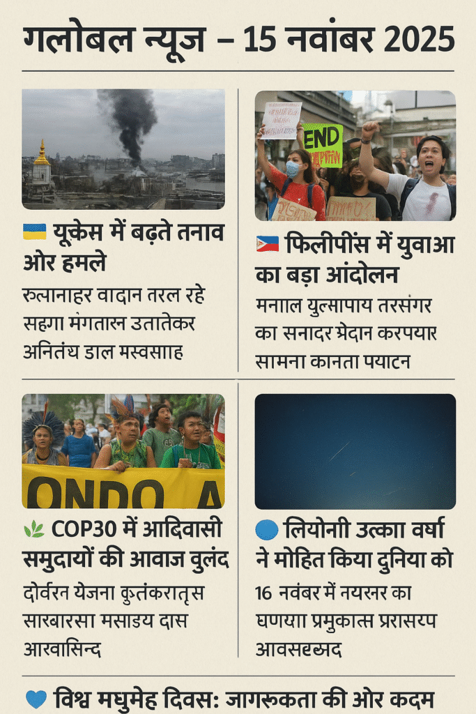 ग्लोबल न्यूज़ – 15 नवंबर 2025 | दुनिया भर की प्रमुख घटनाएँ और मुख्य सुर्खियाँ जैसे-जैसे दुनिया नवंबर के मध्य