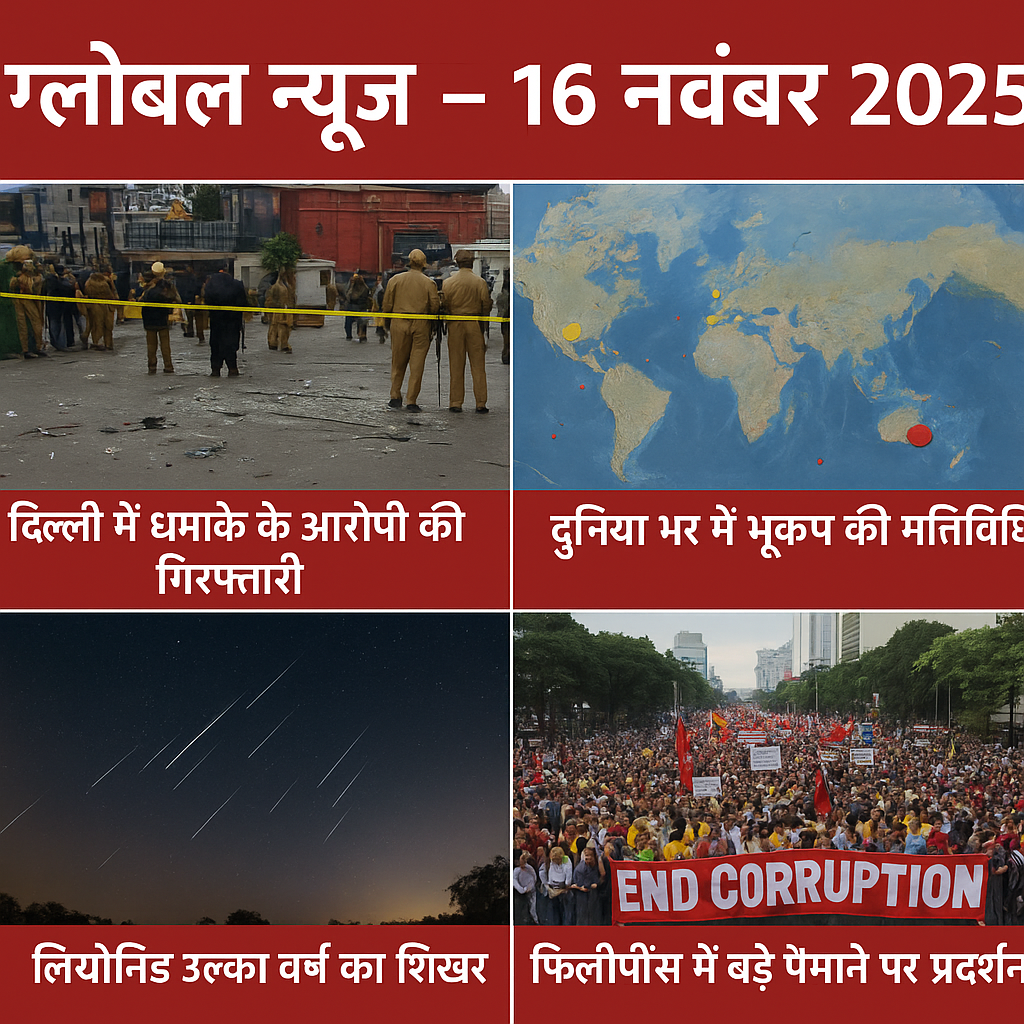 ग्लोबल न्यूज़ – 16 नवंबर 2025 | दुनिया की बड़ी खबरें और प्रमुख सुर्खियाँ