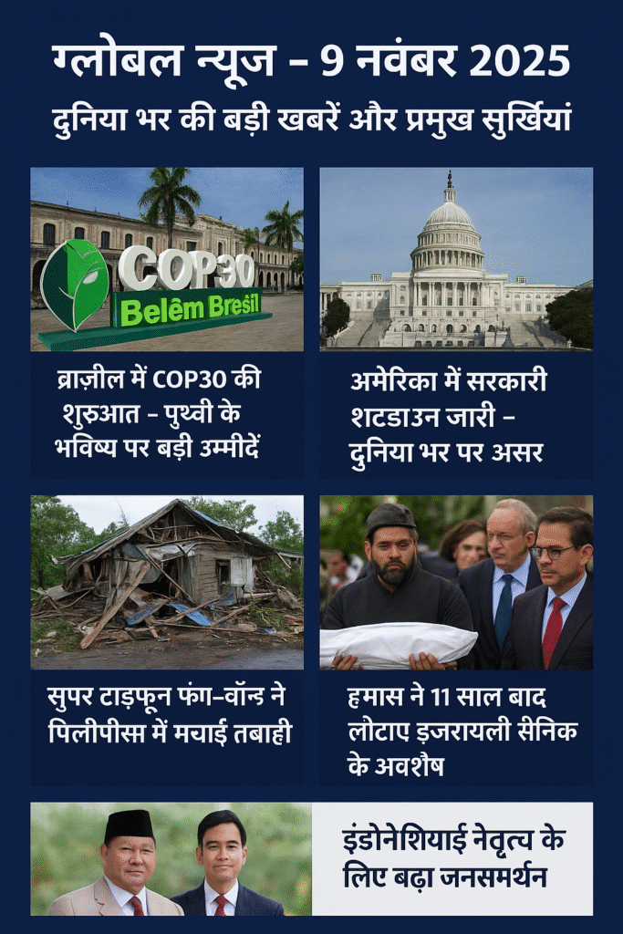 ग्लोबल न्यूज़ – 9 नवंबर 2025 | दुनिया भर की बड़ी खबरें और प्रमुख सुर्खियाँ 9 नवंबर 2025 दुनिया के