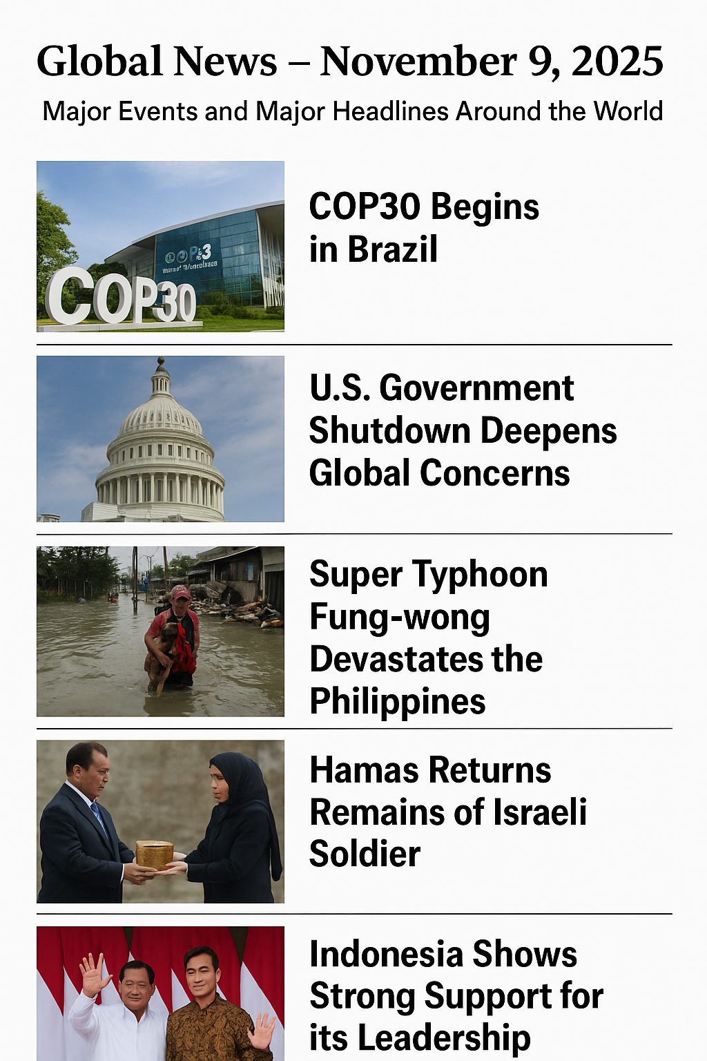 Global News – November 9, 2025 | Major Events and Major Headlines Around the World November 9, 2025 brought a