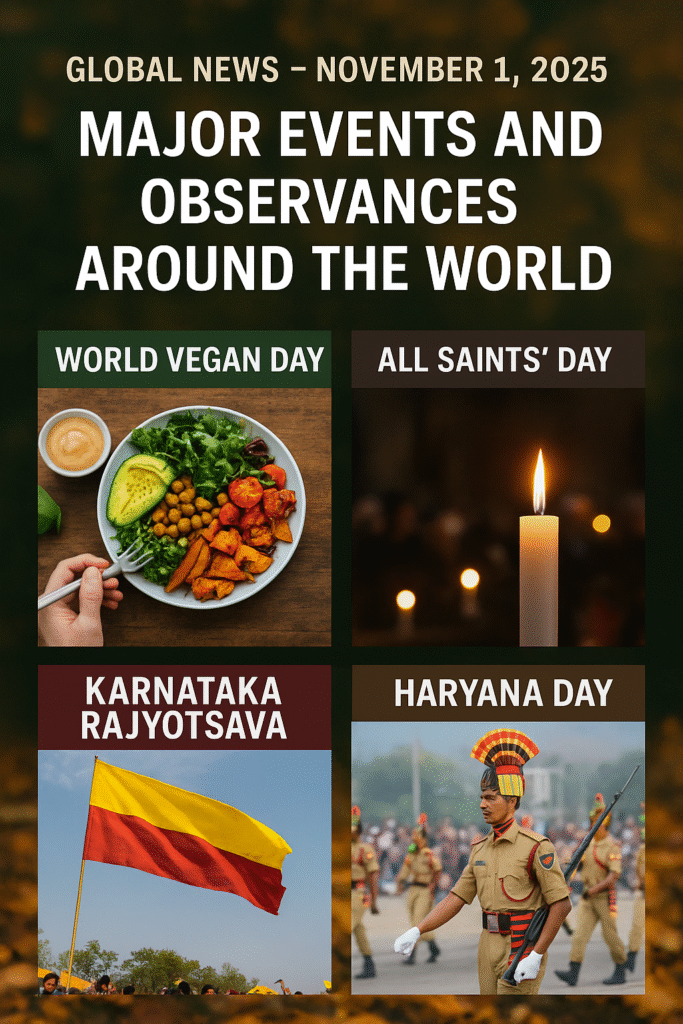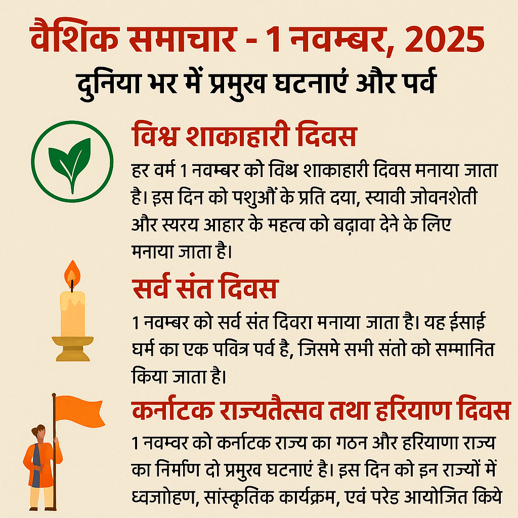 वैश्विक समाचार – 1 नवम्बर, 2025 | दुनिया भर में प्रमुख घटनाएं और पर्व 1 नवम्बर 2025 एक ऐसा दिन