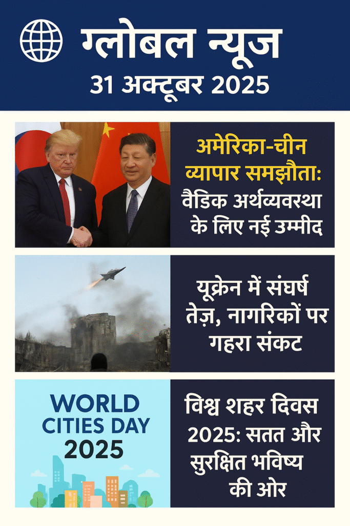 ग्लोबल न्यूज़ – 31 अक्टूबर 2025 | दुनिया भर की प्रमुख घटनाएँ और पर्व अमेरिका–चीन व्यापार समझौता: वैश्विक अर्थव्यवस्था के
