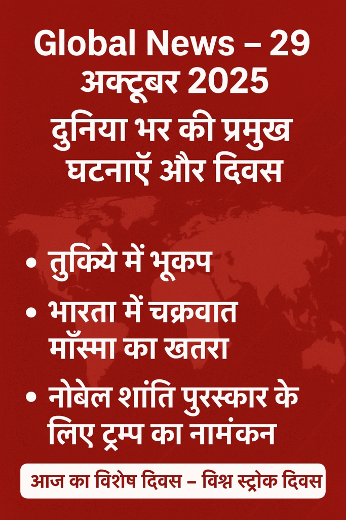 Global News – 29 अक्टूबर 2025 | दुनिया भर की प्रमुख घटनाएँ और दिवस आज, 29 अक्टूबर 2025, दुनिया भर