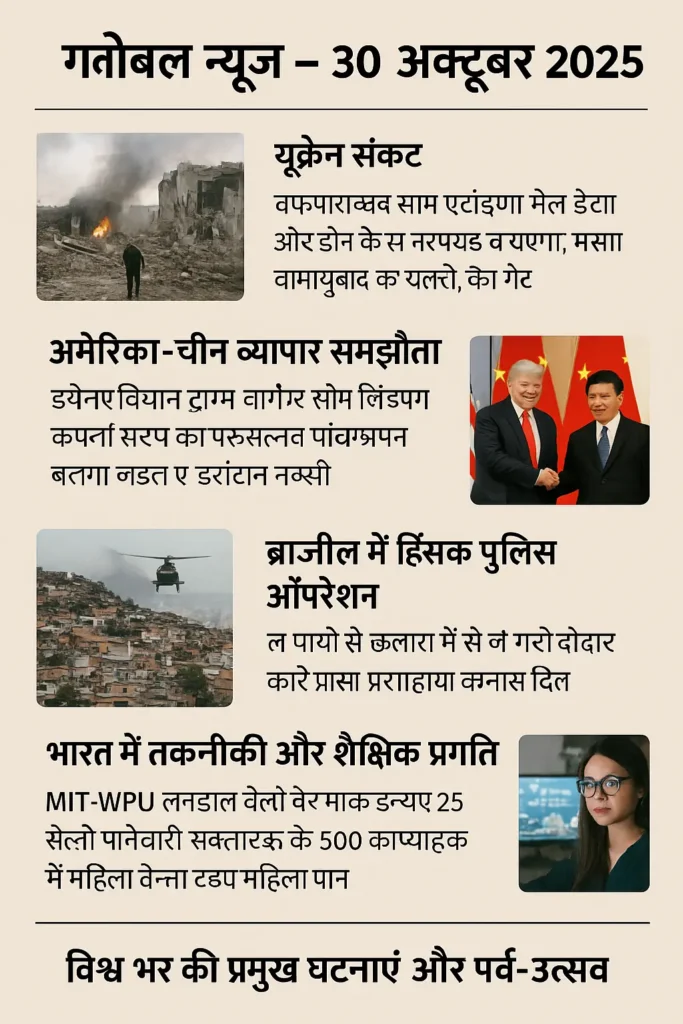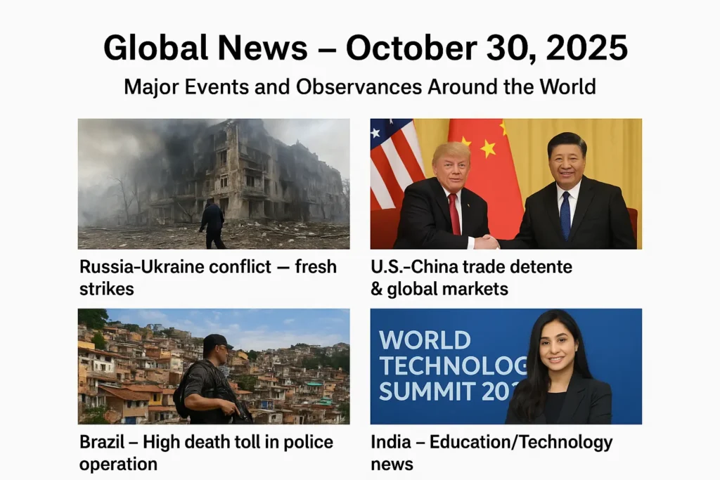 ग्लोबल न्यूज़ – 30 अक्टूबर 2025 | दुनिया भर की प्रमुख घटनाएं और पर्व-उत्सव 30 अक्टूबर 2025 को दुनिया भर